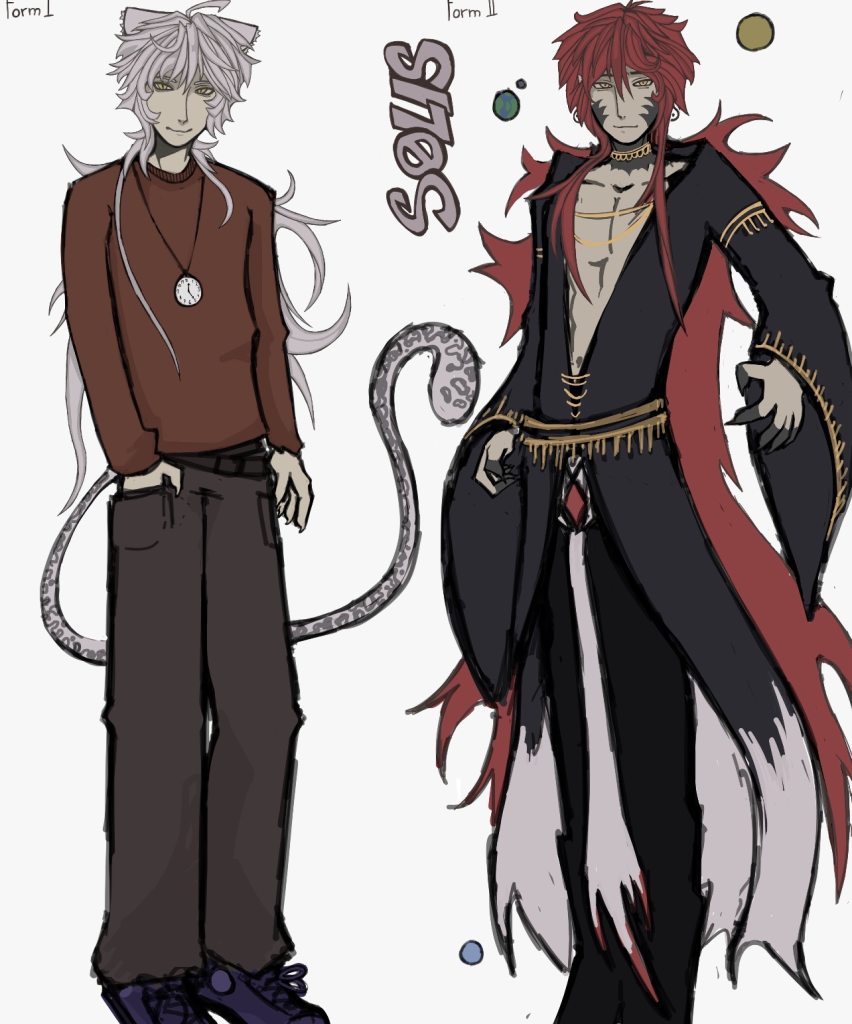 As of now he has two forms. The first one, where he has animal ears and white hair, is his current/ actual form. He’s a hard-working employee, who is just trying to pay his monthly rent. His second form is his past. He was once a Sun God. Pretty cool, right? Unfortunately, he was betrayed by his brother and stripped of his power, leaving him stuck living as an average employee. If you’d like to learn more about Solis and his story, be sure to follow along and check out my upcoming posts!